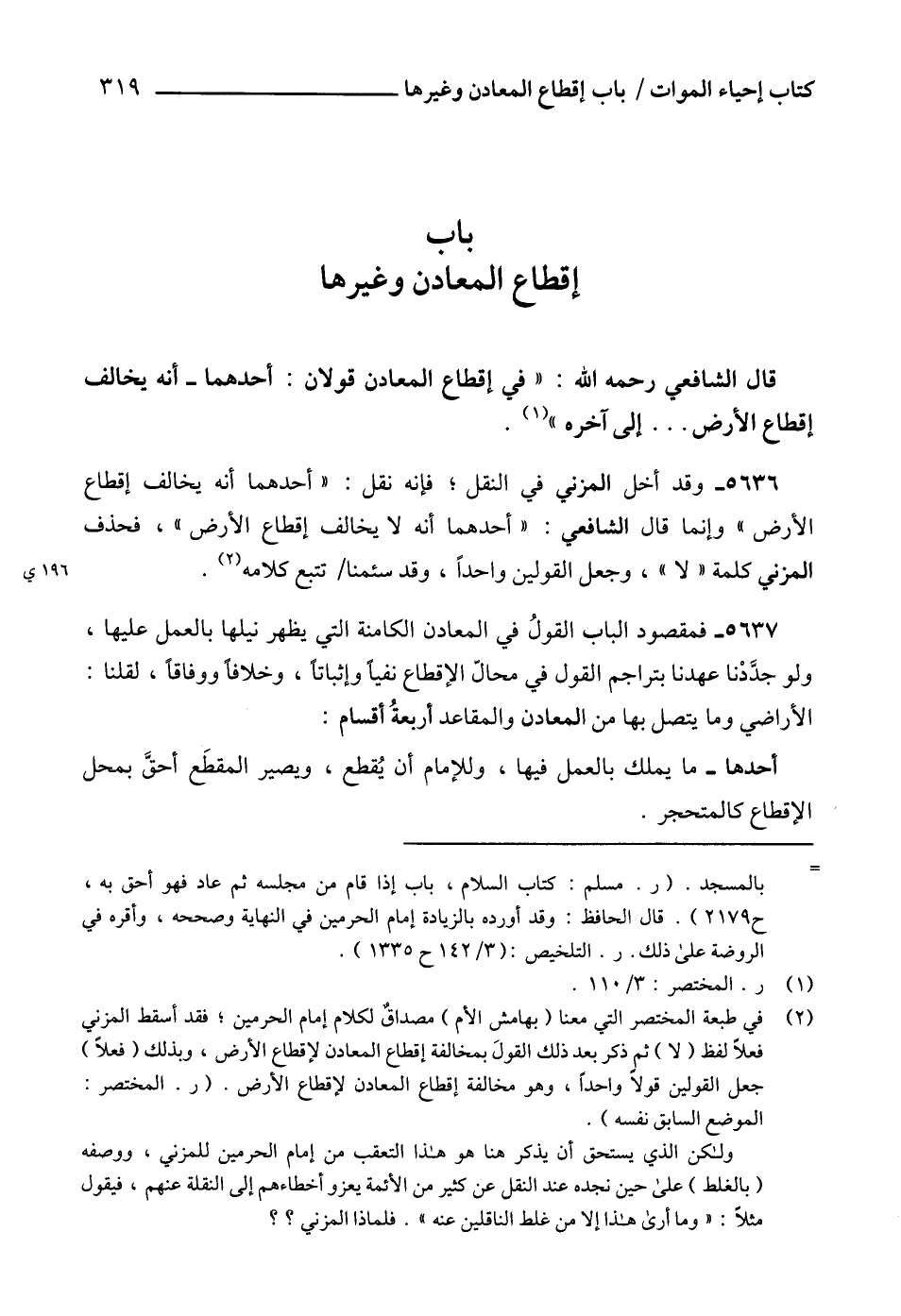 5636 - وقد أخل المزني في النقل؛ فإنه نقل: " أحدهما أنه يخالف إقطاع الأرض لا وإنما قال الشافعي: " أحدهما أنه لا يخالف إقطاع الأرض "، فحذف المزني كلمة " لا "، وجعل القولين واحداً، وقد سئمنا تتبع كلامه (2).