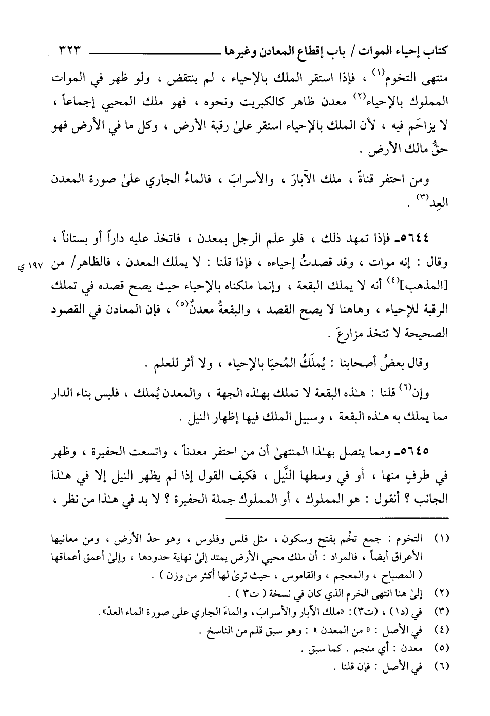 (3) في (د 1)، (ت 3): "ملك الآبار والأسرابَ، والماءَ الجاري على صورة الماء العدّ".