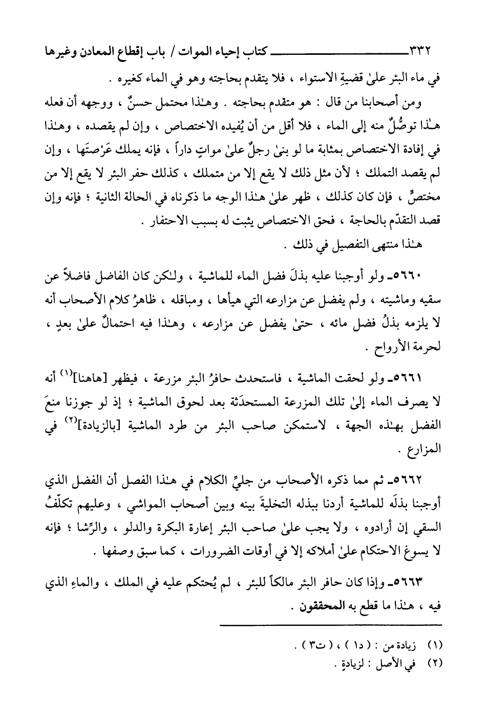 5663 - وإذا كان حافر البئر مالكاً للبئر، لم يُحتكم عليه في الملك، والماءِ الذي فيه، هذا ما قطع به المحققون.