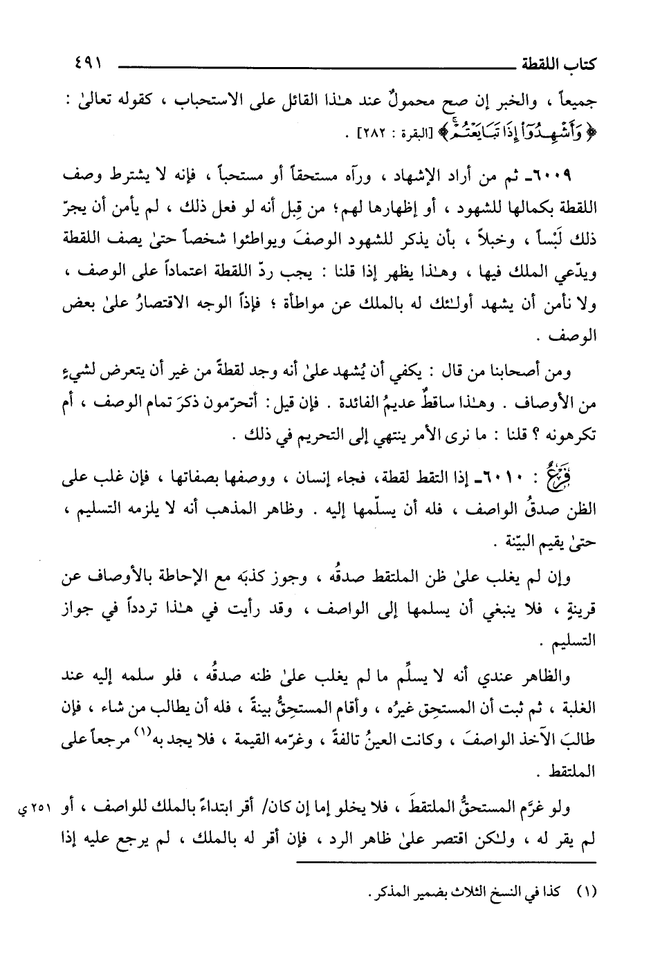 6010 - إذا التقط لقطة، فجاء إنسان، ووصفها بصفاتها، فإن غلب على الظن صدقُ الواصف، فله أن يسلّمها إليه. وظاهر المذهب أنه لا يلزمه التسليم، حتى يقيم البيّنة.