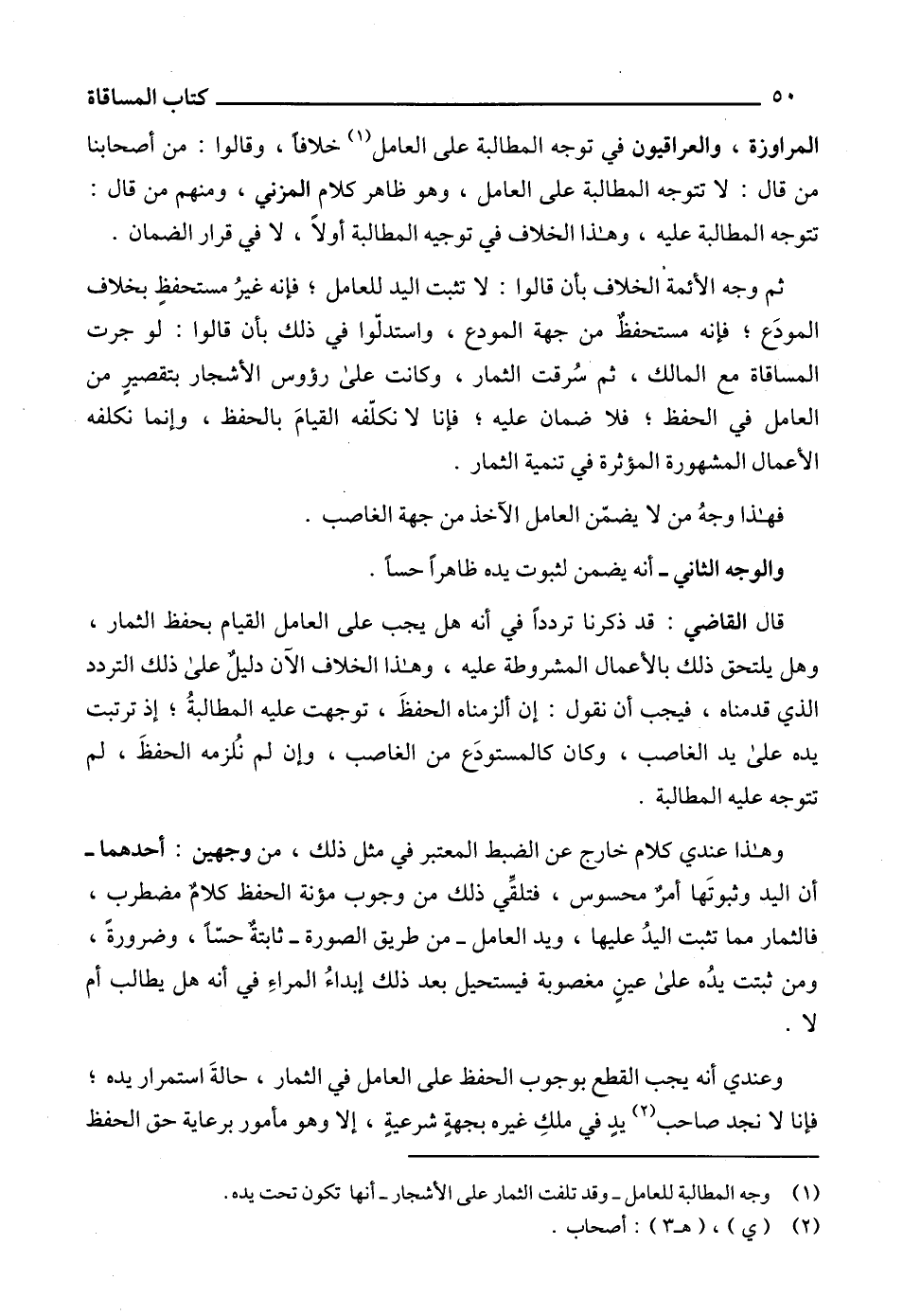 (1) وجه المطالبة للعامل -وقد تلفت الثمار على الأشجار- أنها تكون تحت يده.