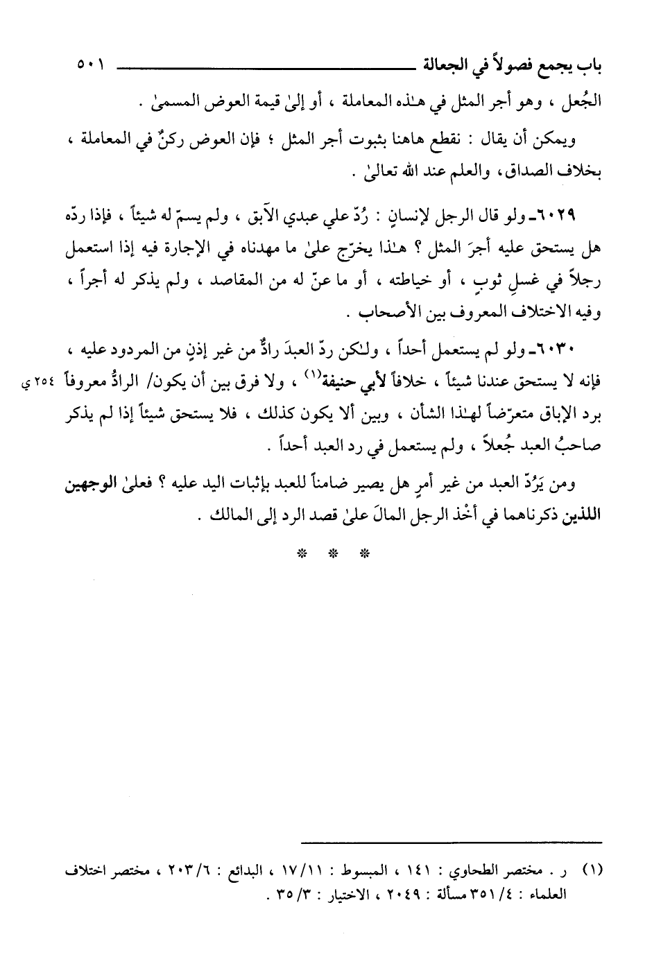 (1) ر. مختصر الطحاوي: 141، المبسوط: 11/ 17، البدائع: 6/ 203، مختصر اختلاف العلماء: 4/ 351 مسألة: 2049، الاختيار: 3/ 35.