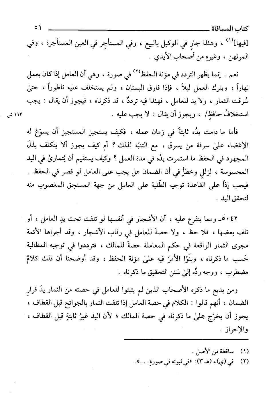 5042 - ومما يتفرع عليه، أن الأشجار في أنفسها لو تلفت تحت يدِ العامل، أو تلف بعضها، فلا حظ، ولا حصةَ للعامل في رقاب الأشجار، وقد أجراها الأئمة مجرى الثمار الواقعة في حكم المعاملة حصةً للمالك، فترددوا في توجيه المطالبة حَسب ما ذكرناه، وبنَوْا الأمرَ فيه على مؤنة الحفظ، وقد أوضحنا أن ذلك كلامٌ مضطرب، ووجه ردِّه إلى سَنن التحقيق ما ذكرناه.