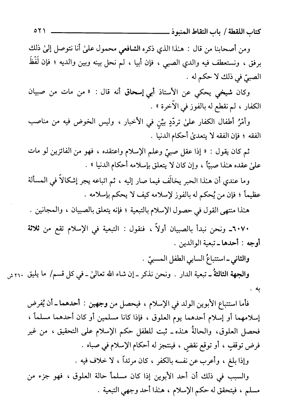 6070 - ونحن نبدأ بالصبيان أولاً، فنقول: التبعية في الإسلام تقع من ثلاثة أوجه: أحدها - تبعية الوالدين.