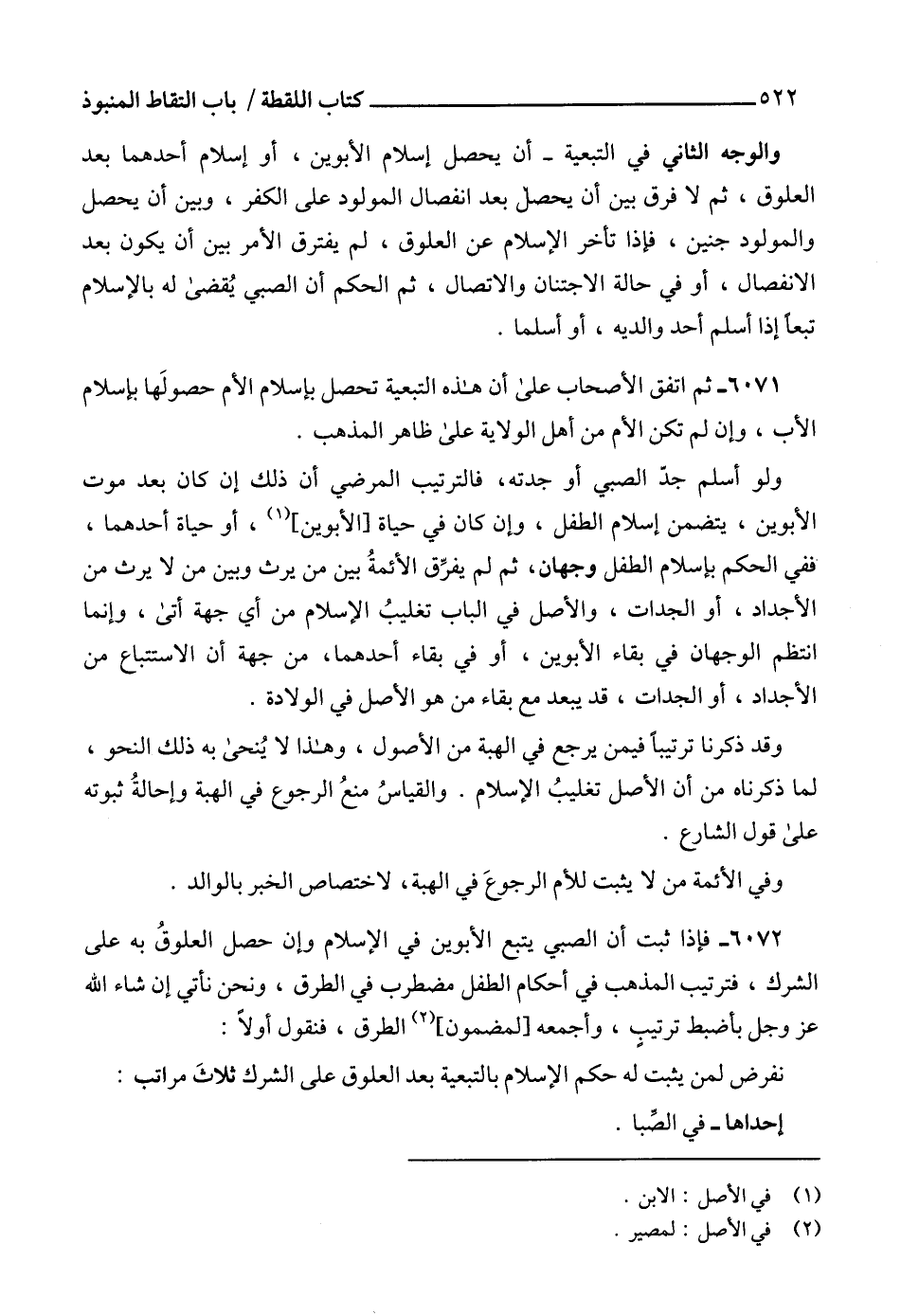 6072 - فإذا ثبت أن الصبي يتبع الأبوين في الإسلام وإن حصل العلوقُ به على الشرك، فترتيب المذهب في أحكام الطفل مضطرب في الطرق، ونحن نأتي إن شاء الله