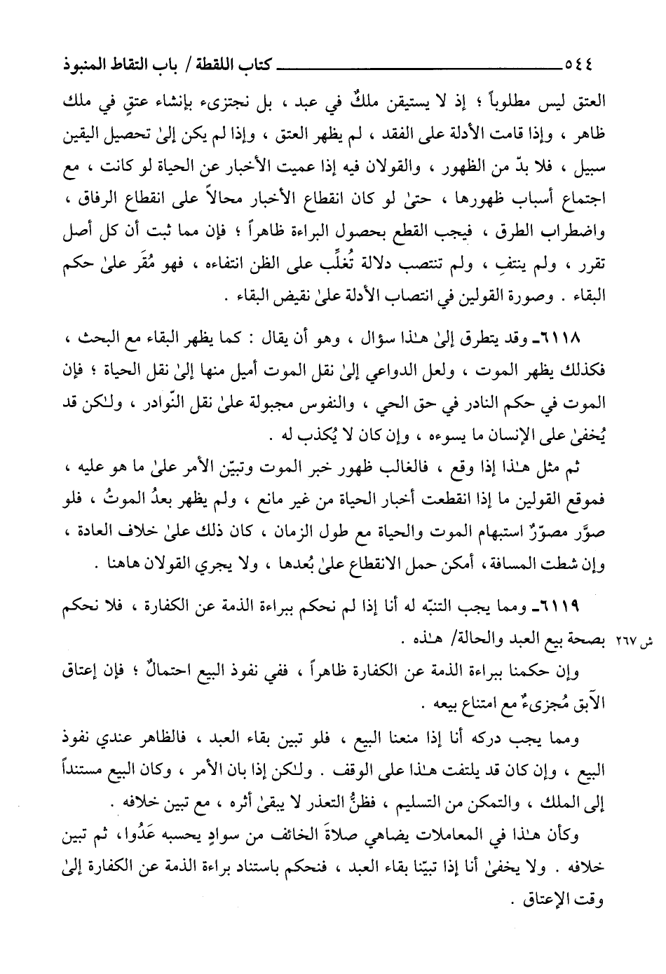 6119 - ومما يجب التنبّه له أنا إذا لم نحكم ببراءة الذمة عن الكفارة، فلا نحكم بصحة بيع العبد والحالة هذه.