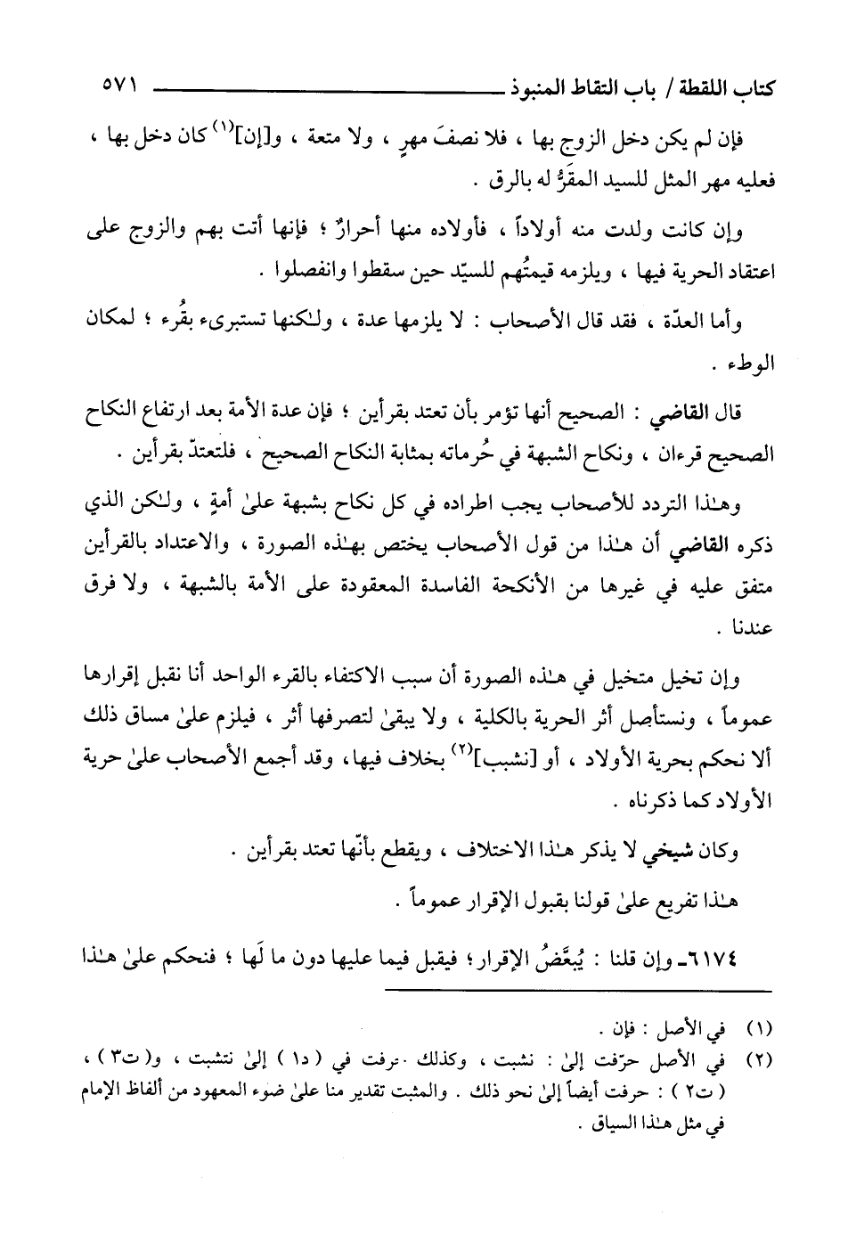 وهذا التردد للأصحاب يجب اطراده في كل نكاح بشبهة على أمةٍ، ولكن الذي ذكره القاضي أن هذا من قول الأصحاب يختص بهذه الصورة، والاعتداد بالقرأين متفق عليه في غيرها من الأنكحة الفاسدة المعقودة على الأمة بالشبهة، ولا فرق عندنا.