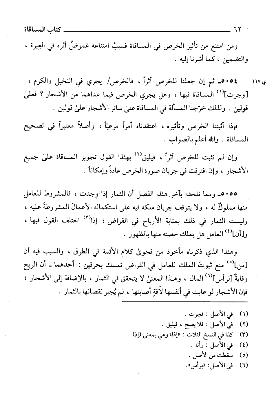5055 - ومما نلحقه بآخر هذا الفصل أن الثمار إذاً وجدت، فالمشروط للعامل منها مملوكٌ له، ولا يتوقف جريان ملكه فيه على استكماله الأعمالَ المشروطةَ عليه، وليست الثمار في ذلك بمثابة الأرباح في القراض؛ إذا (3) اختلف القول فيها، و [أن] (4) العامل هل يملك حصته منها بالظهور.