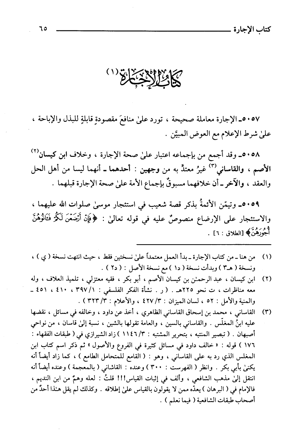 (1) من هنا -من كتاب الإجارة- بدأ العمل معتمداًَ على نسختين فقط، حيث انتهت نسخة (ي)، ونسخة (هـ 3) وبدأت نسخة (د 1) مع نسخة الأصل: (د 2).