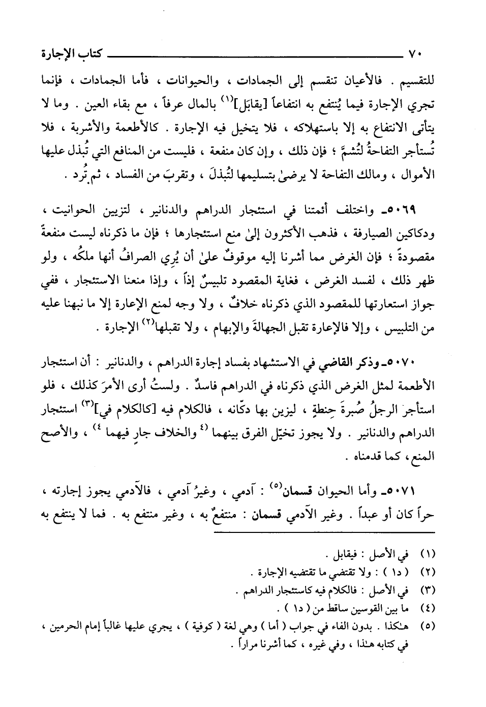 5071 - وأما الحيوان قسمان (5): آدمي، وغيرُ آدمي، فالآدمي يجوز إجارته، حراً كان أو عبداً. وغير الآدمي قسمان: منتفعٌ به، وغير منتفع به. فما لا ينتفع به