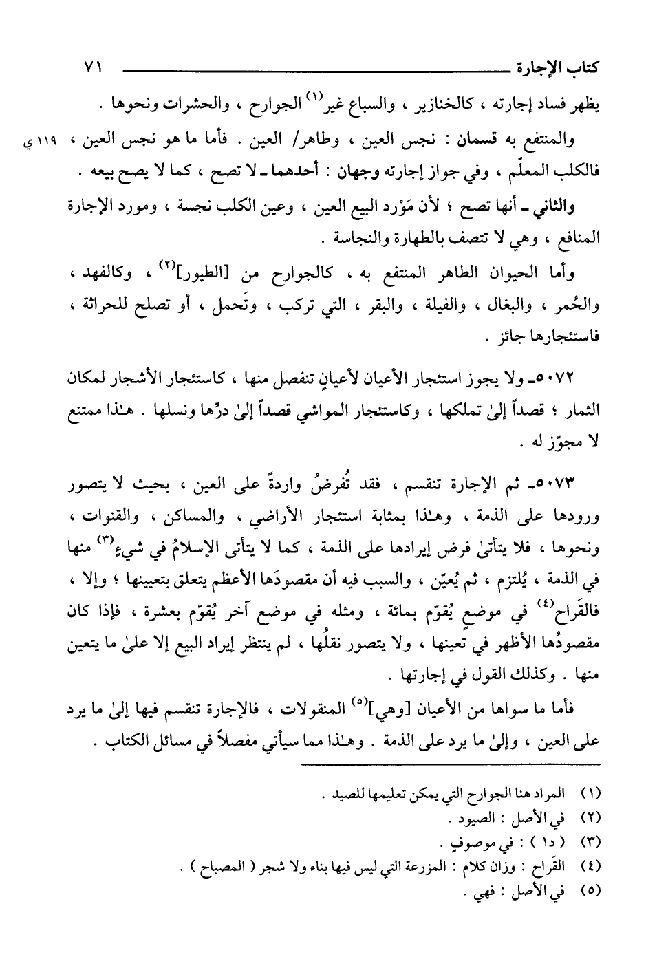 5072 - ولا يجوز استئجار الأعيان لأعيانٍ تنفصل منها، كاستئجار الأشجار لمكان الثمار؛ قصداً إلى تملكها، وكاستئجار المواشي قصداً إلى درِّها ونسلها. هذا ممتنع لا مجوّز له.
