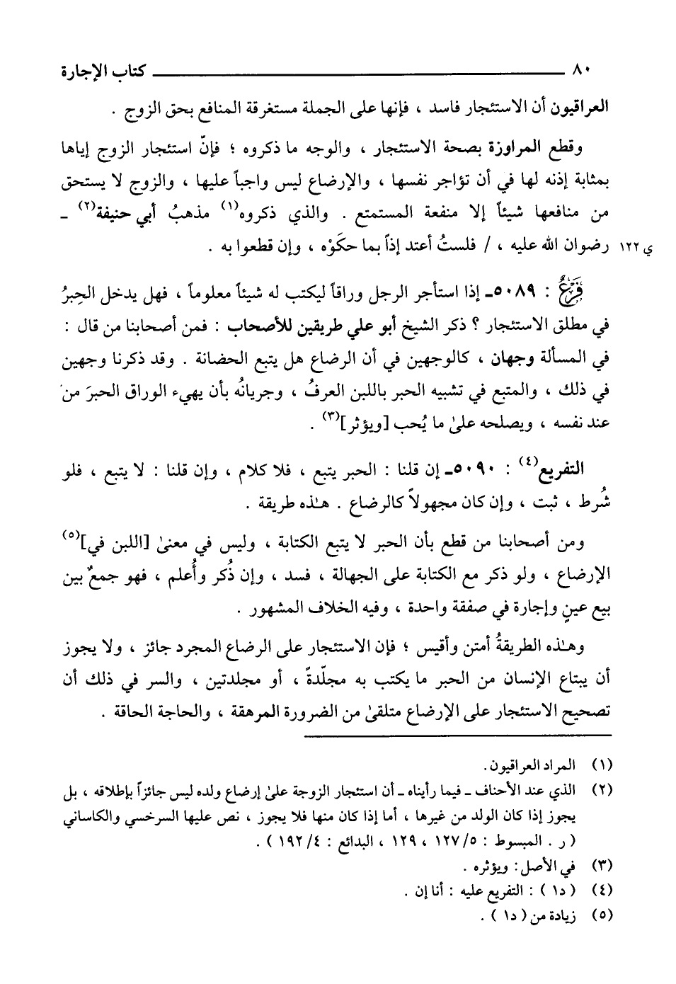 (2) الذي عند الأحناف -فيما رأيناه- أن استئجار الزوجة على إرضاع ولده ليس جائزاً بإطلاقه، بل يجوز إذا كان الولد من غيرها، أما إذا كان منها فلا يجوز، نص عليها السرخسي والكاساني (ر. المبسوط: 5/ 127، 129، البدائع: 4/ 192).