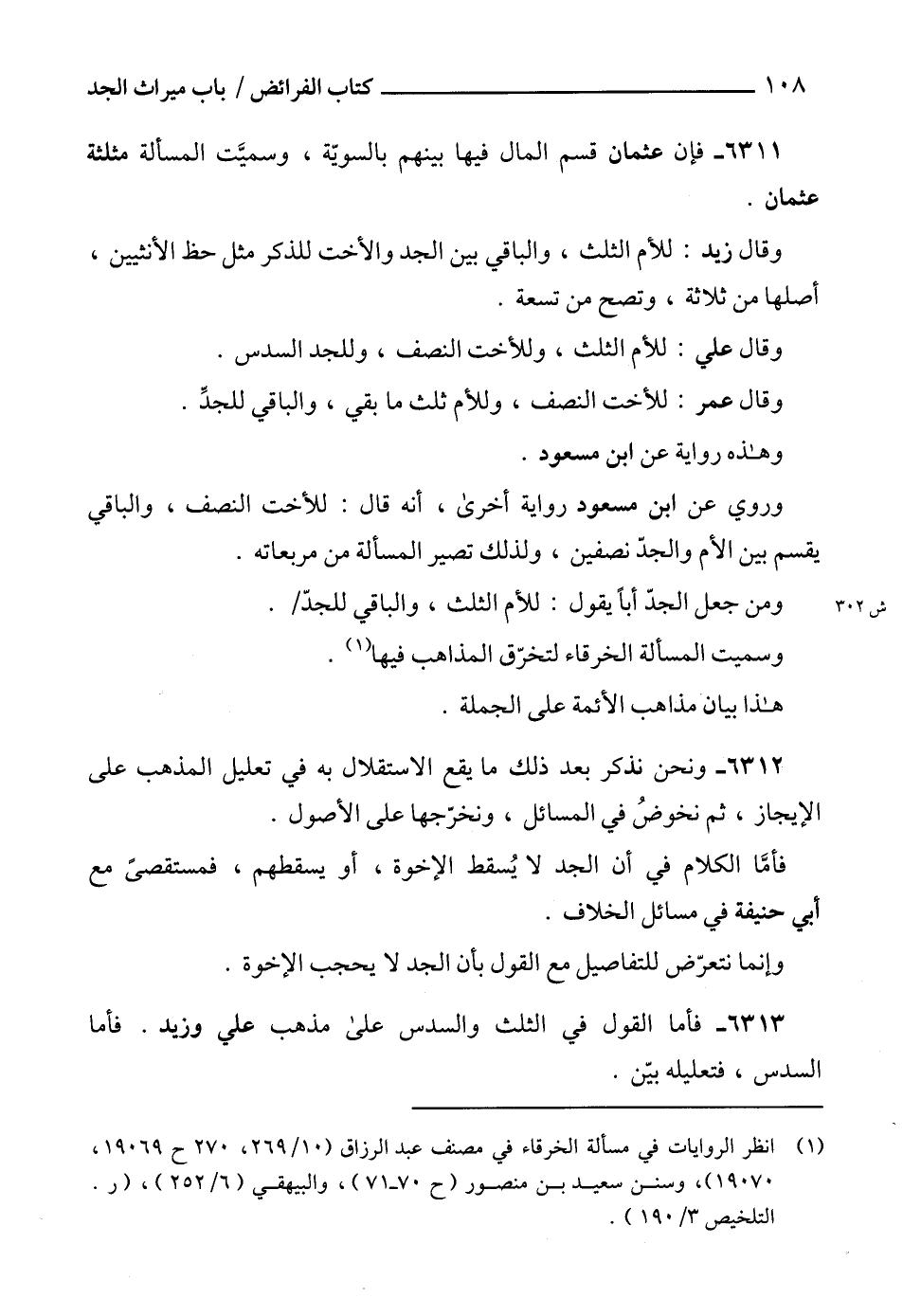 6313 - فأما القول في الثلث والسدس على مذهب علي وزيد. فأما السدس، فتعليله بيّن.