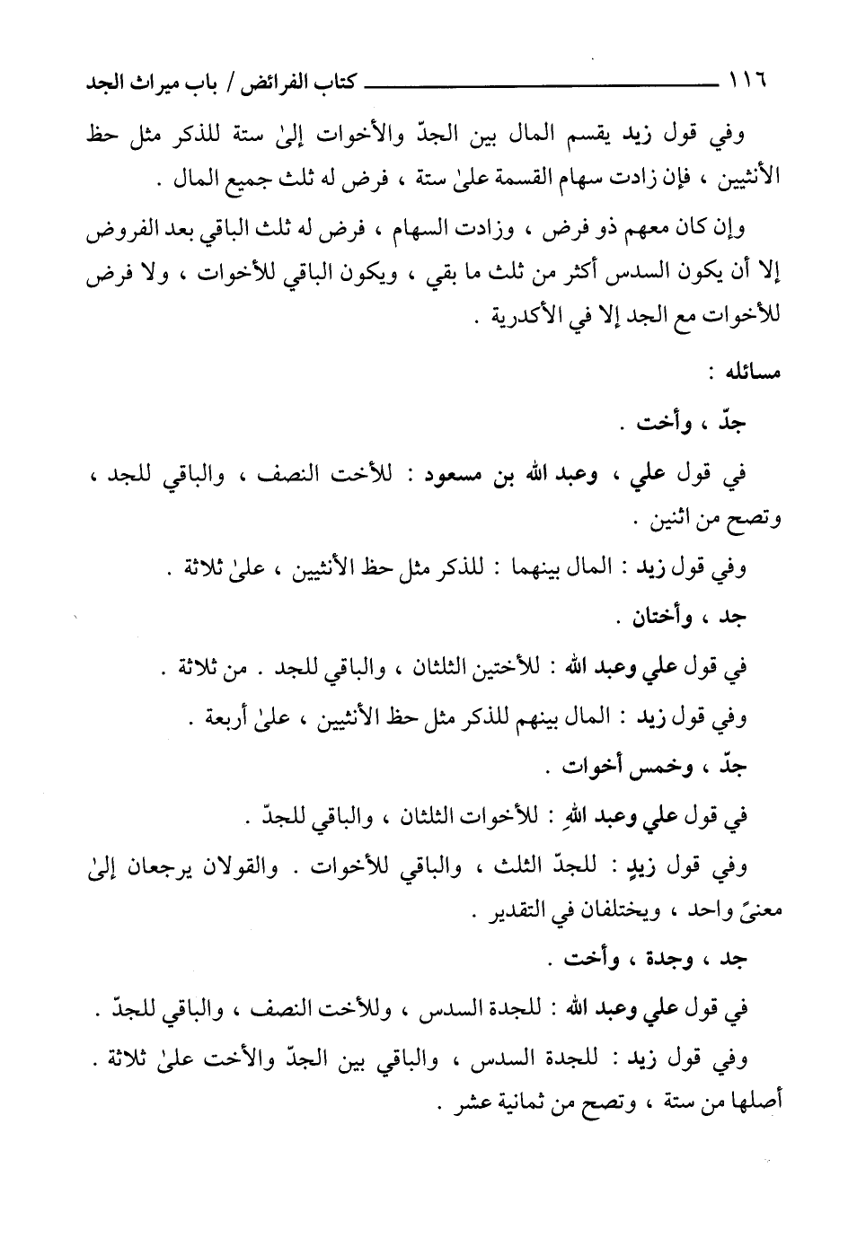 في قول علي وعبد الله: للأختين الثلثان، والباقي للجد. من ثلاثة.