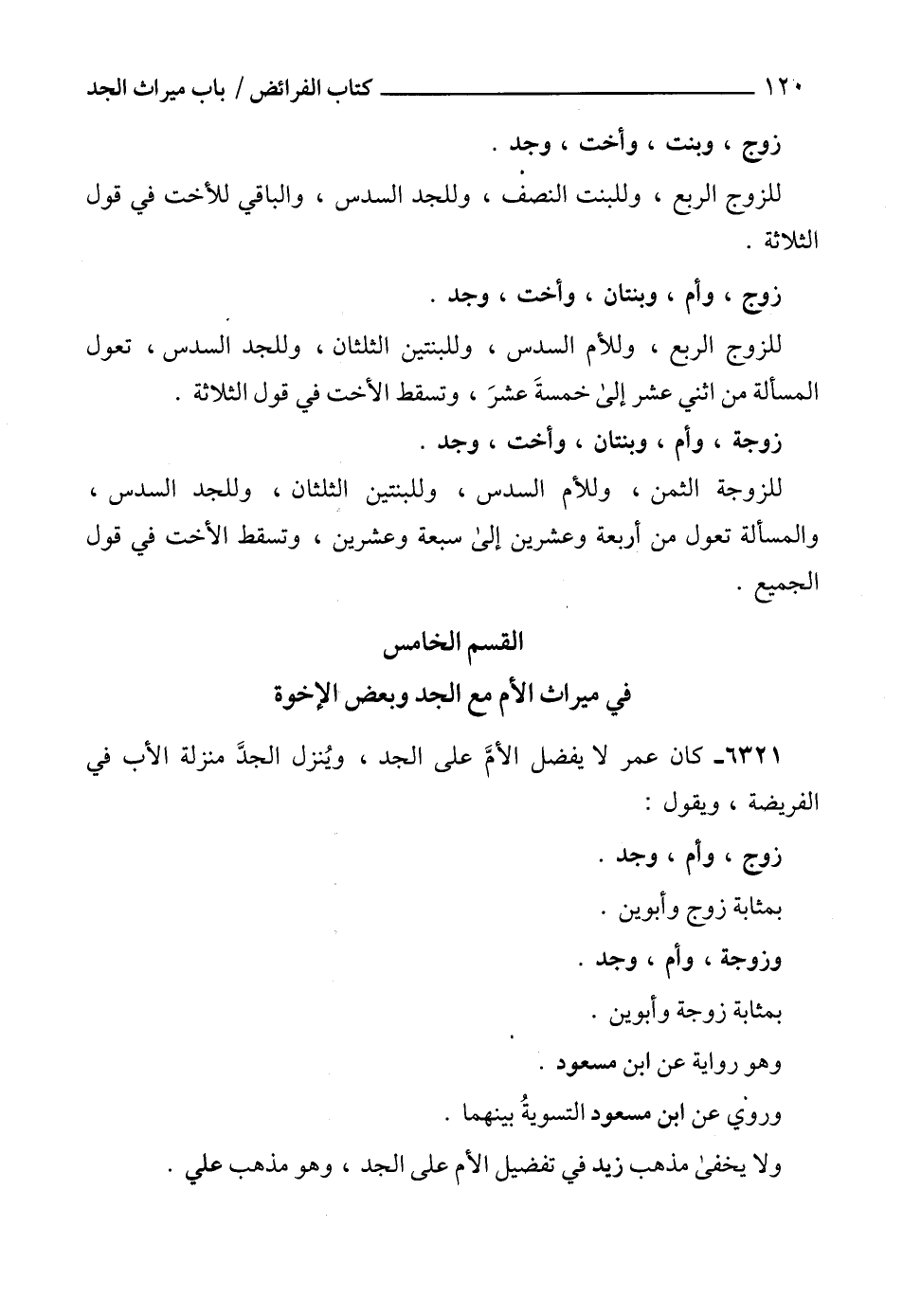6321 - كان عمر لا يفضل الأمَّ على الجد، ويُنزل الجدَّ منزلة الأب في الفريضة، ويقول: