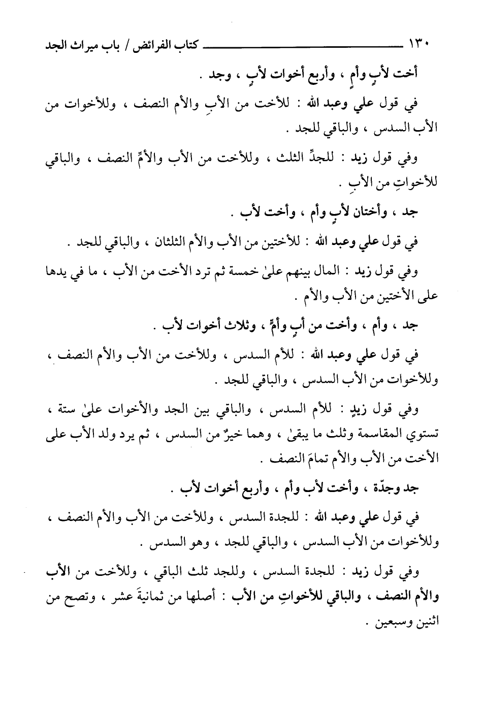 وفي قول زيد: للجدة السدس، وللجد ثلث الباقي، وللأخت من الأب والأم النصف، والباقي للأخواتِ من الأب: أصلها من ثمانيةَ عشر، وتصح من اثنين وسبعين.