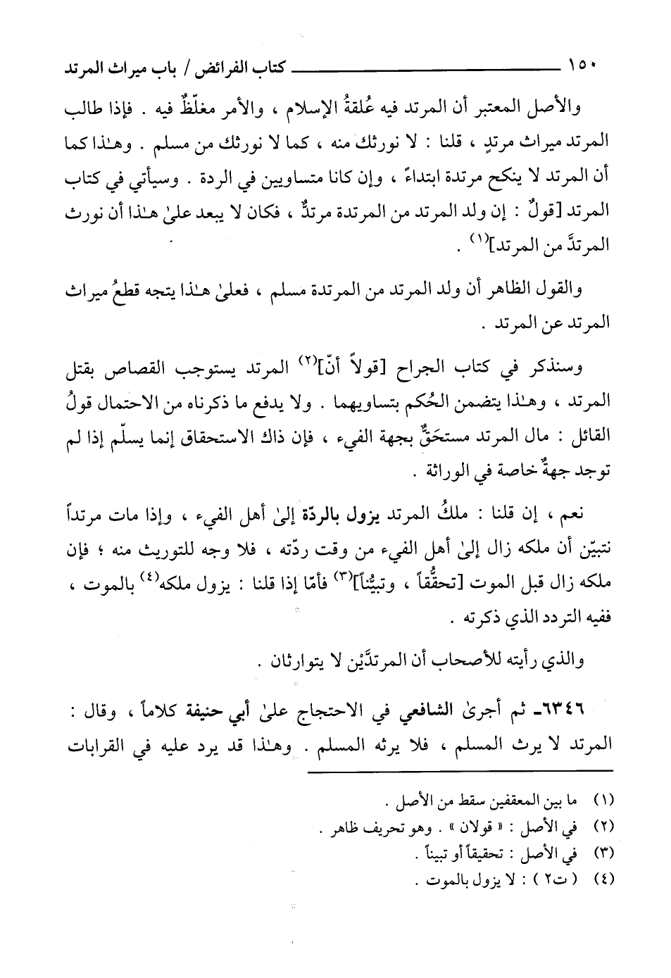 6346 - ثم أجرى الشافعي في الاحتجاج على أبي حنيفة كلاماً، وقال: المرتد لا يرث المسلم، فلا يرثه المسلم. وهذا قد يرد عليه في القرابات