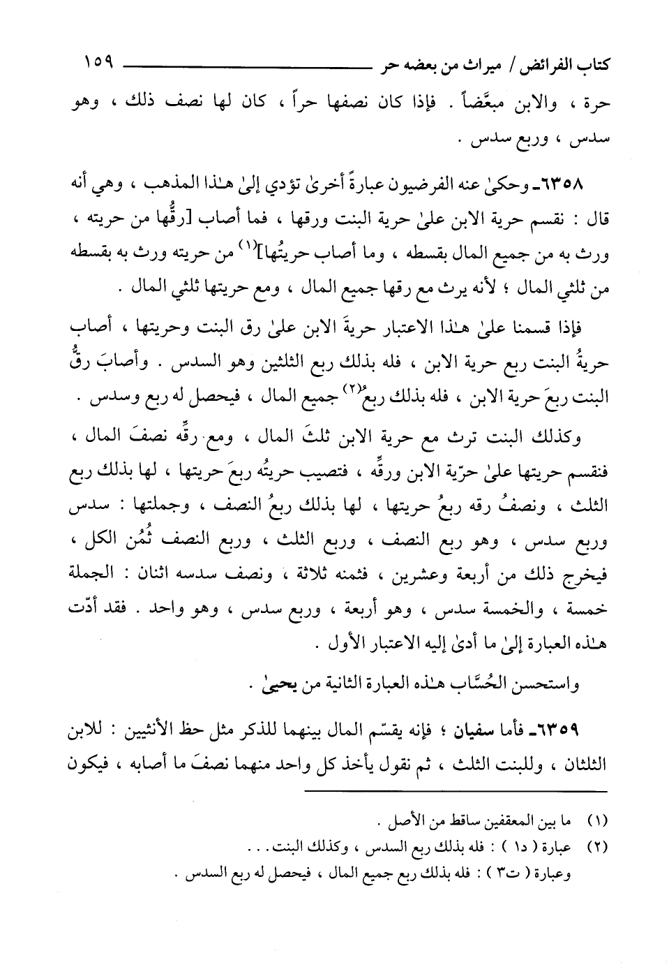 6359 - فأما سفيان؛ فإنه يقسّم المال بينهما للذكر مثل حظ الأنثيين: للابن الثلثان، وللبنت الثلث، ثم نقول يأخذ كل واحد منهما نصفَ ما أصابه، فيكون