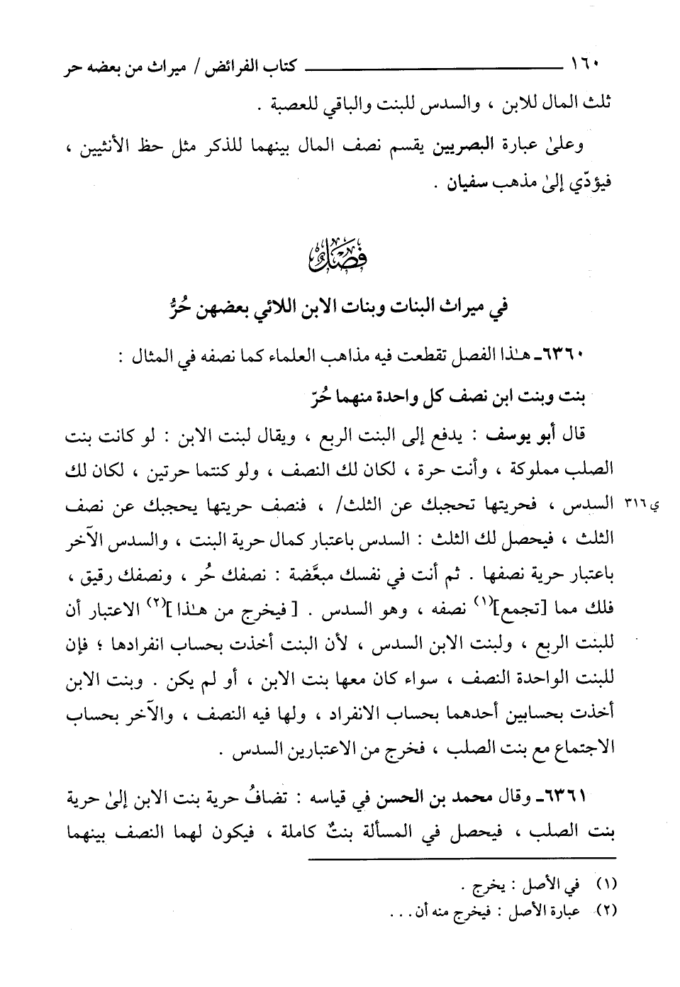 6360 - هذا الفصل تقطعت فيه مذاهب العلماء كما نصفه في المثال: