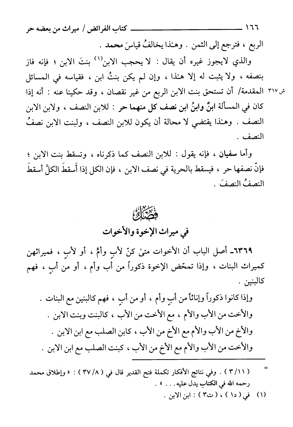 والذي لا يجوز غيره أن يقال: لا يحجب الابن (1) بنتَ الابن؛ فإنه فاز بنصفه، ولا يثبت له إلا هذا، وإن لم يكن بنتُ ابن، فقياسه في المسائل المقدمة أن تستحق بنت الابن الربع من غير نقصان، وقد حكينا عنه: أنه إذا كان في المسألة ابنٌ وابنُ ابن نصف كل منهما حر: للابن النصف، ولابن الابن النصف. وهذا يقتضي لا محالة أن يكون للابن النصف، ولبنت الابن نصفُ النصف.