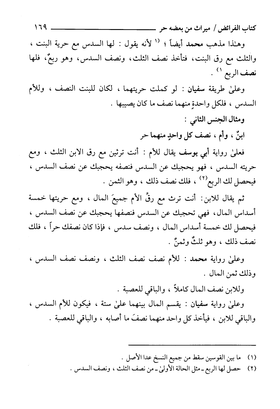 وعلى طريقة سفيان: لو كملت حريتهما، لكان للبنت النصف، وللأم السدس، فلكل واحدةٍ منهما نصف ما كان يصيبها.