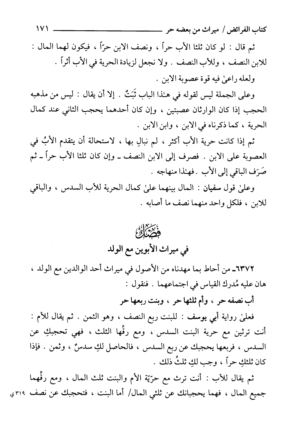 6372 - من أحاط بما مهدناه من الأصول في ميراث أحد الوالدين مع الولد، هان عليه مُدرك القياس في اجتماعهما. فنقول: