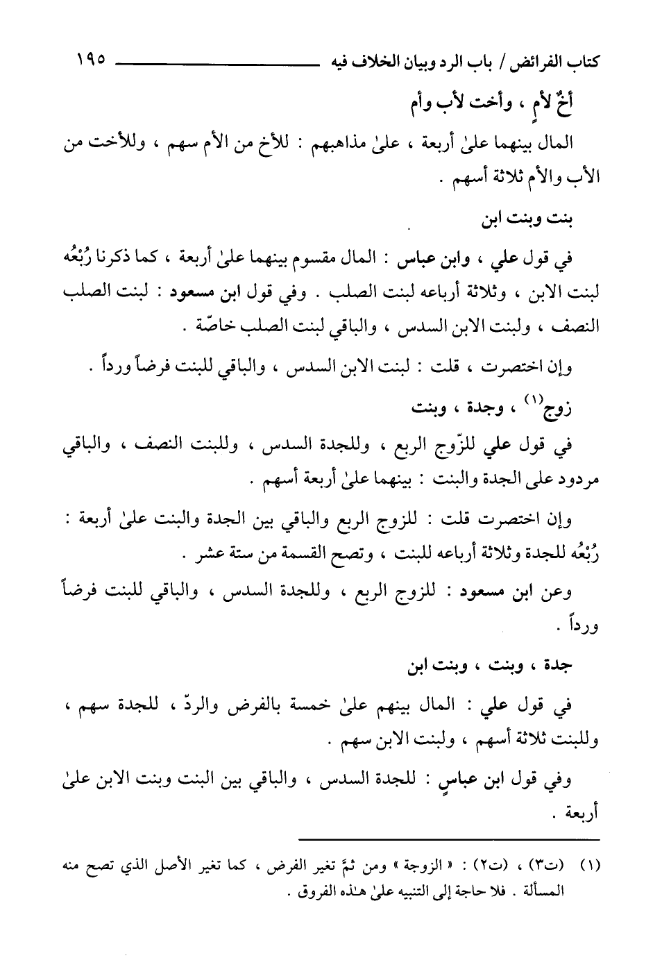 (1) (ت 3)، (ت 2): " الزوجة " ومن ثمَّ تغير الفرض، كما تغير الأصل الذي تصح منه