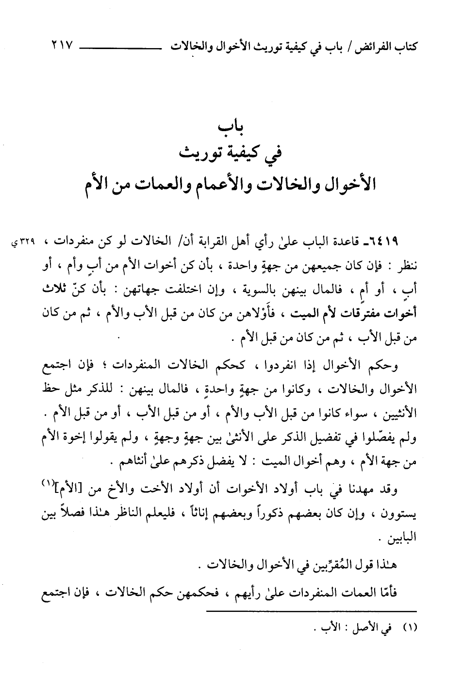 باب في كيفية توريث الأخوال والخالات والأعمام والعمات من الأم