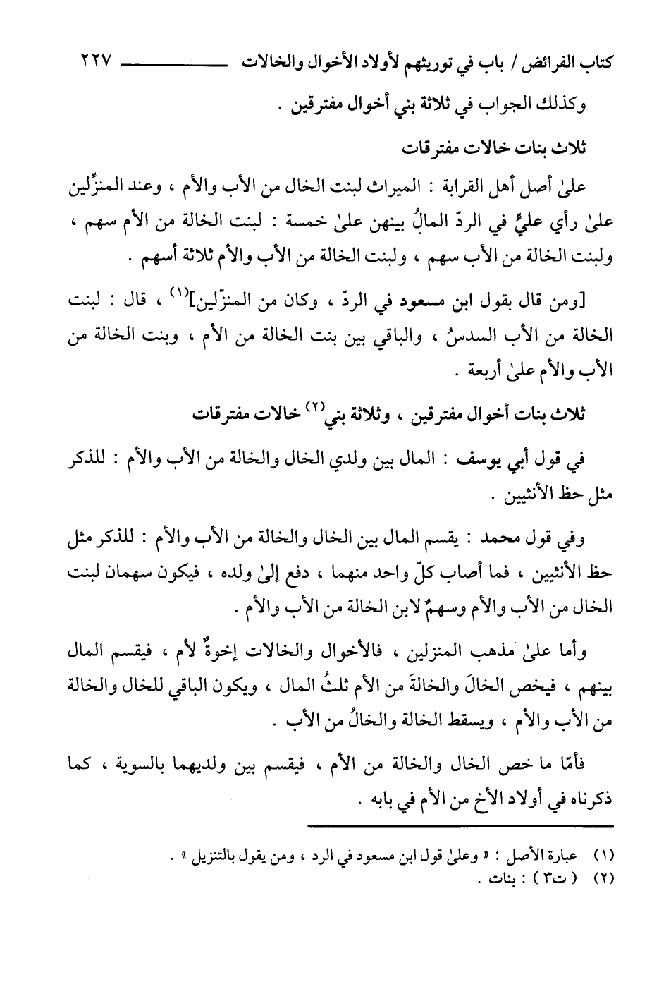 (1) عبارة الأصل: " وعلى قول ابن مسعود في الرد، ومن يقول بالتنزيل ".