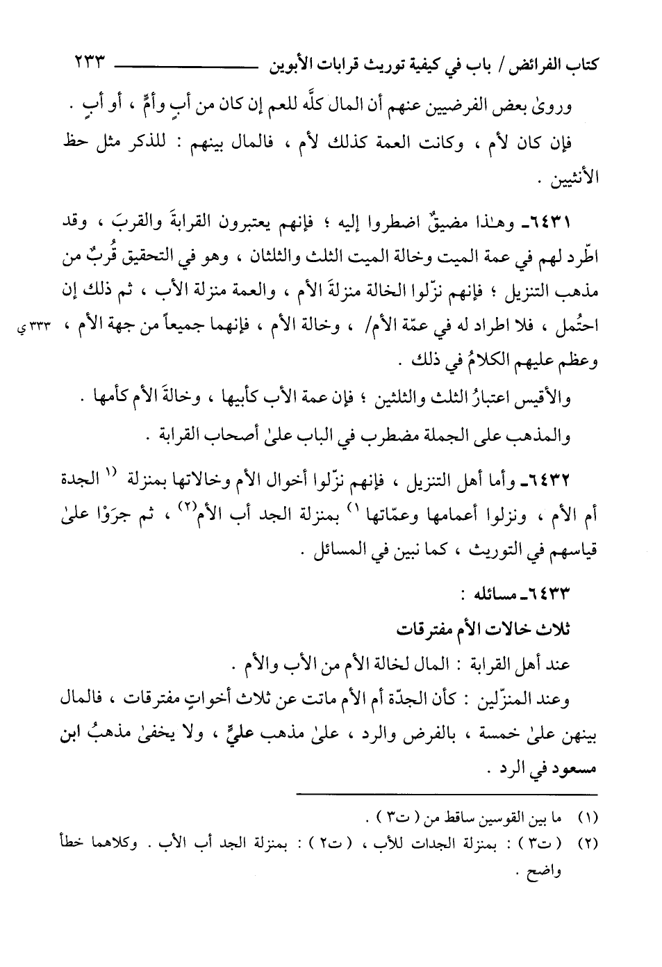 6432 - وأما أهل التنزيل، فإنهم نزّلوا أخوال الأم وخالاتها بمنزلة (1 الجدة أم الأم، ونزلوا أعمامها وعمّاتها 1) بمنزلة الجد أب الأم (2)، ثم جرَوْا على قياسهم في التوريث، كما نبين في المسائل.