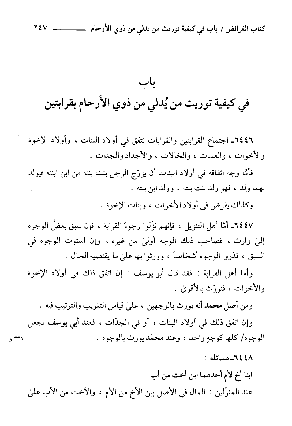 6446 - اجتماع القرابتين والقرابات تتفق في أولاد البنات، وأولاد الإخوة والأخوات، والعمات، والخالات، والأجداد والجدات.