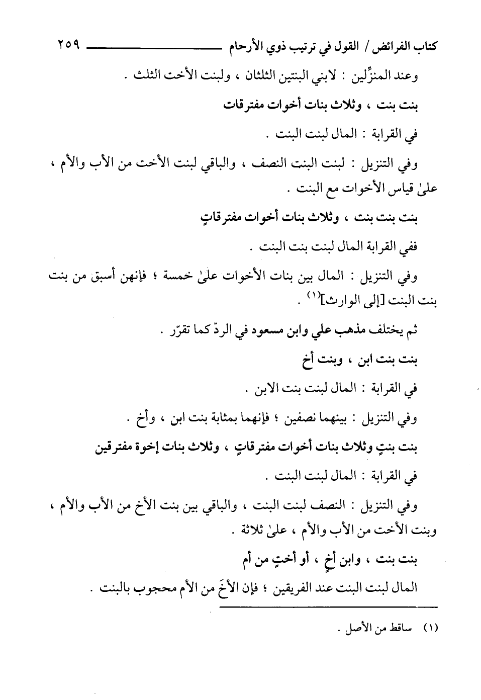 وفي التنزيل: المال بين بنات الأخوات على خمسة؛ فإنهن أسبق من بنت بنت البنت [إلى الوارث] (1).