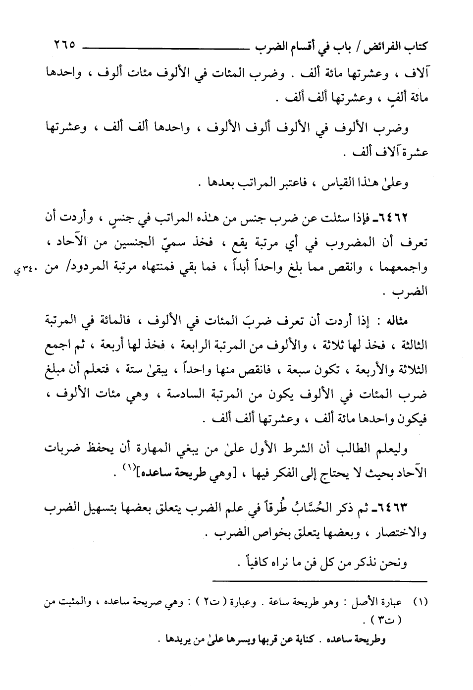 6463 - ثم ذكر الحُسَّابُ طُرقاً في علم الضرب يتعلق بعضها بتسهيل الضرب والاختصار، وبعضها يتعلق بخواص الضرب.