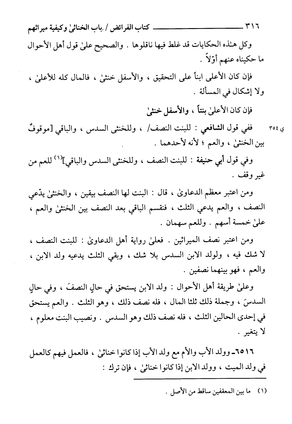 6516 - وولد الأب والأم مع ولد الأب إذا كانوا خناثى، فالعمل فيهم كالعمل في ولد الميت، وولد الابن إذا كانوا خناثى، فإن ترك: