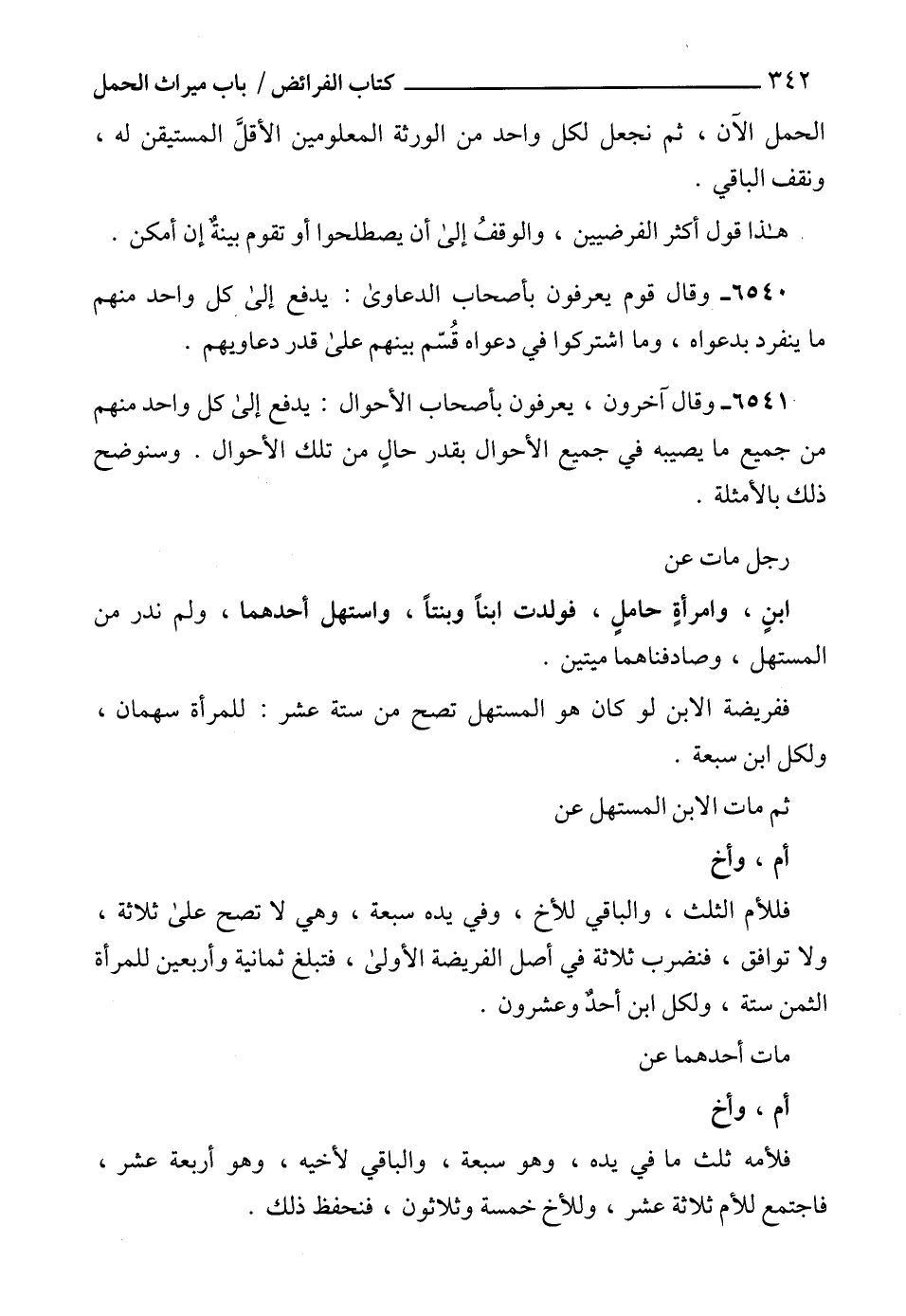 ْ6541 - وقال آخرون، يعرفون بأصحاب الأحوال: يدفع إلى كل واحد منهم من جميع ما يصيبه في جميع الأحوال بقدر حالٍ من تلك الأحوال. وسنوضح ذلك بالأمثلة.
