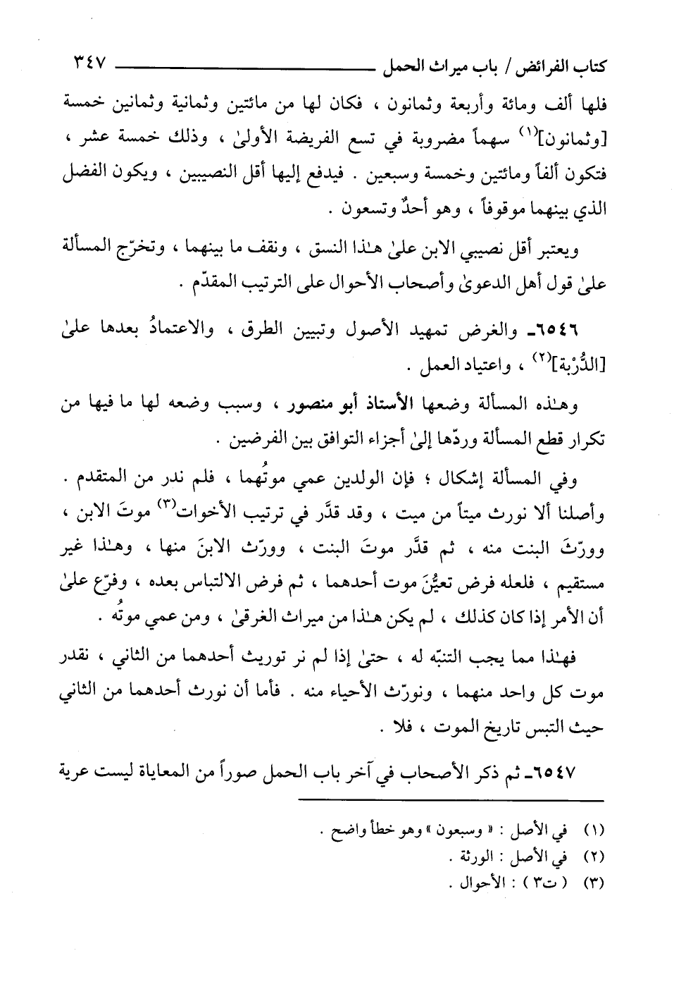 وهذه المسألة وضعها الأستاذ أبو منصور، وسبب وضعه لها ما فيها من تكرار قطع المسألة وردّها إلى أجزاء التوافق بين الفرضين.