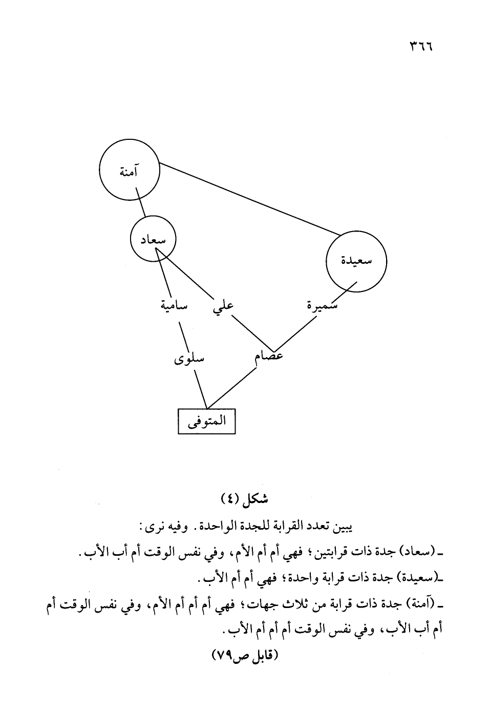 - (آمنة) جدة ذات قرابة من ثلاث جهات؛ فهي أم أم أم الأم، وفي نفس الوقت أم