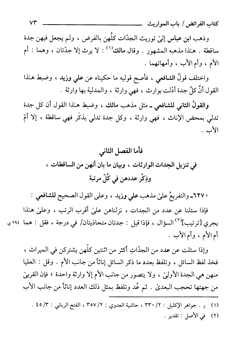 (1) ر. جواهر الإكليل: 2/ 330، حاشية العدوي: 2/ 357، الفتح الرباني: 3/ 45.