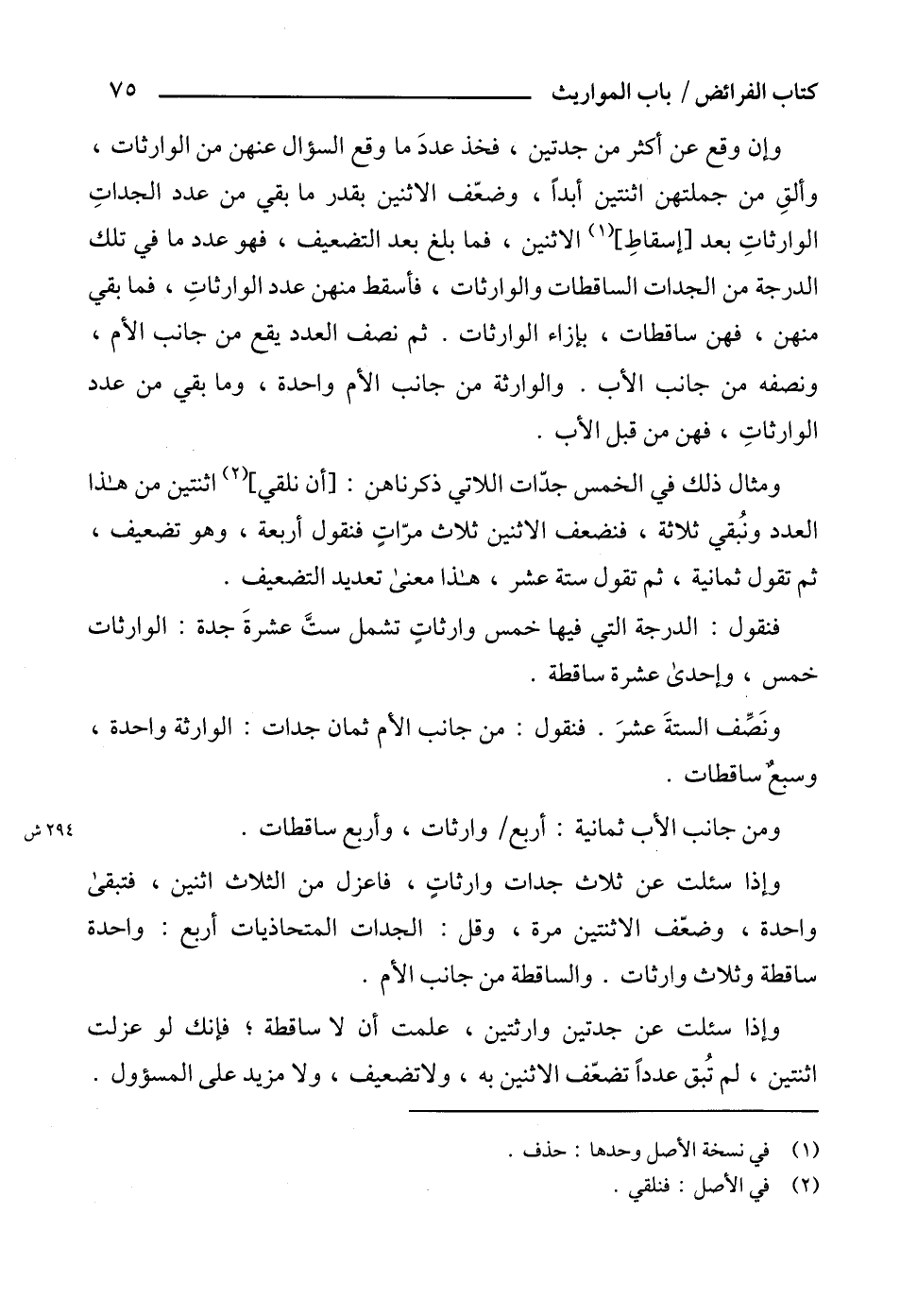وإذا سئلت عن جدتين وارثتين، علمت أن لا ساقطة؛ فإنك لو عزلت اثنتين، لم تُبق عدداً تضعّف الاثنين به، ولا تضعيف، ولا مزيد على المسؤول.