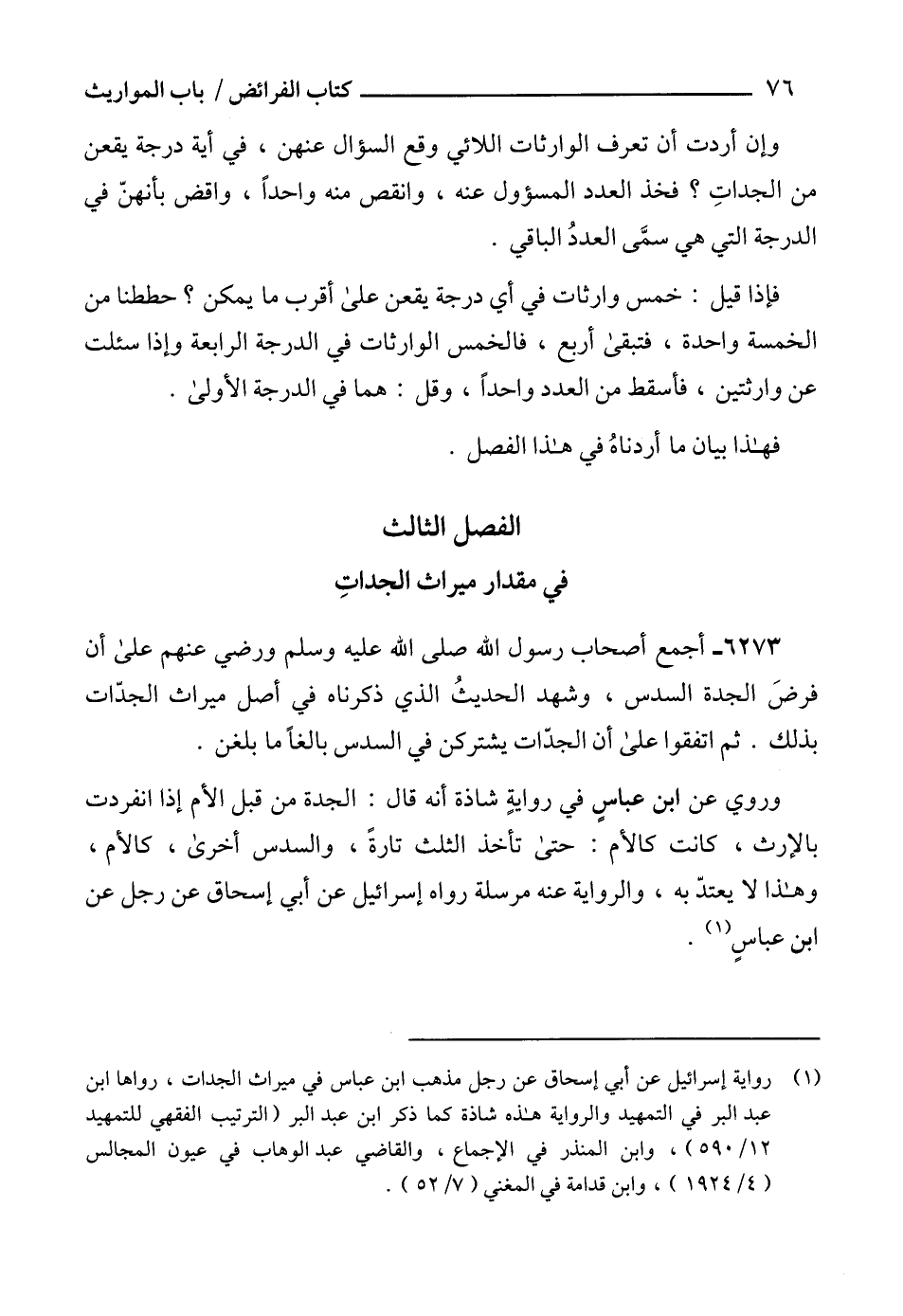 6273 - أجمع أصحاب رسول الله صلى الله عليه وسلم ورضي عنهم على أن فرضَ الجدة السدس، وشهد الحديثُ الذي ذكرناه في أصل ميراث الجدّات بذلك. ثم اتفقوا على أن الجدّات يشتركن في السدس بالغاً ما بلغن.
