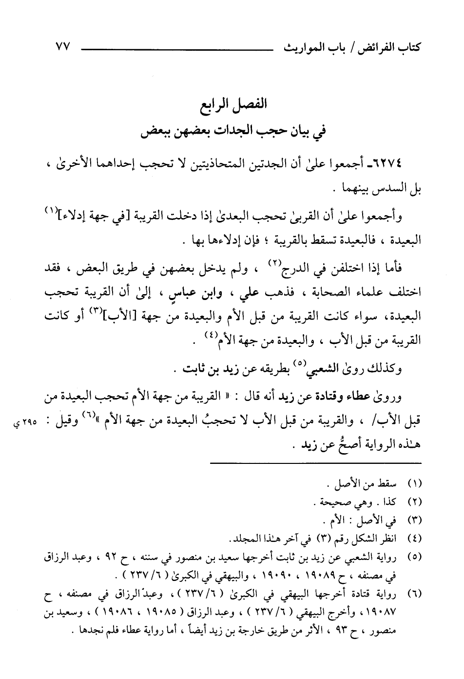 (5) رواية الشعبي عن زيد بن ثابت أخرجها سعيد بن منصور في سننه، ح 92، وعبد الرزاق في مصنفه، ح19090،19089، والبيهقي في الكبرى (6/ 237).