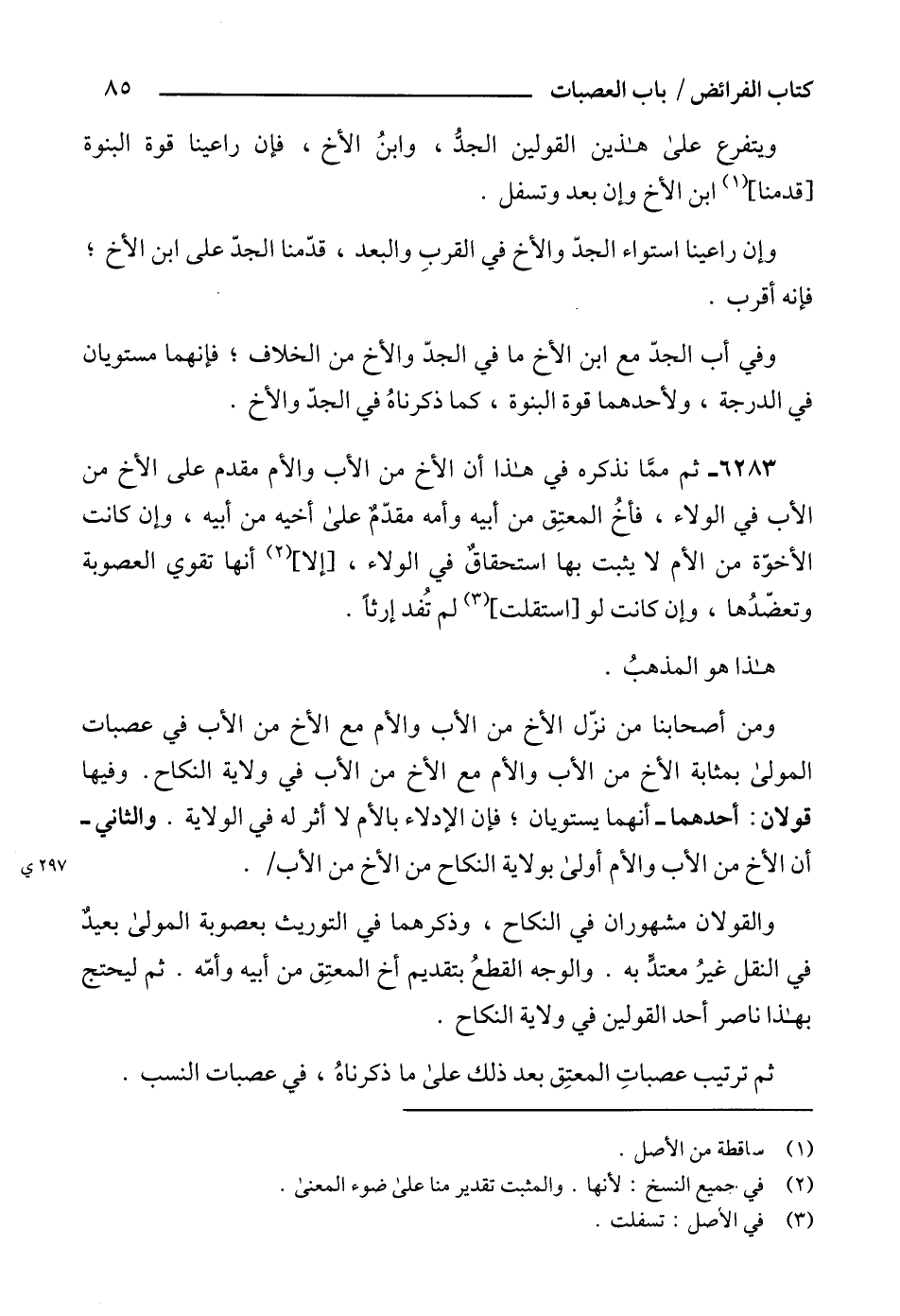 6283 - ثم ممَّا نذكره في هذا أن الأخ من الأب والأم مقدم على الأخ من الأب في الولاء، فأخُ المعتِق من أبيه وأمه مقدّمٌ على أخيه من أبيه، وإن كانت الأخؤة من الأم لا يثبت بها استحقاقٌ في الولاء، [إلا] (2) أنها تقوي العصوبة وتعضّدُها، وإن كانت لو [استقلت] (3) لم تُفد إرثاً.