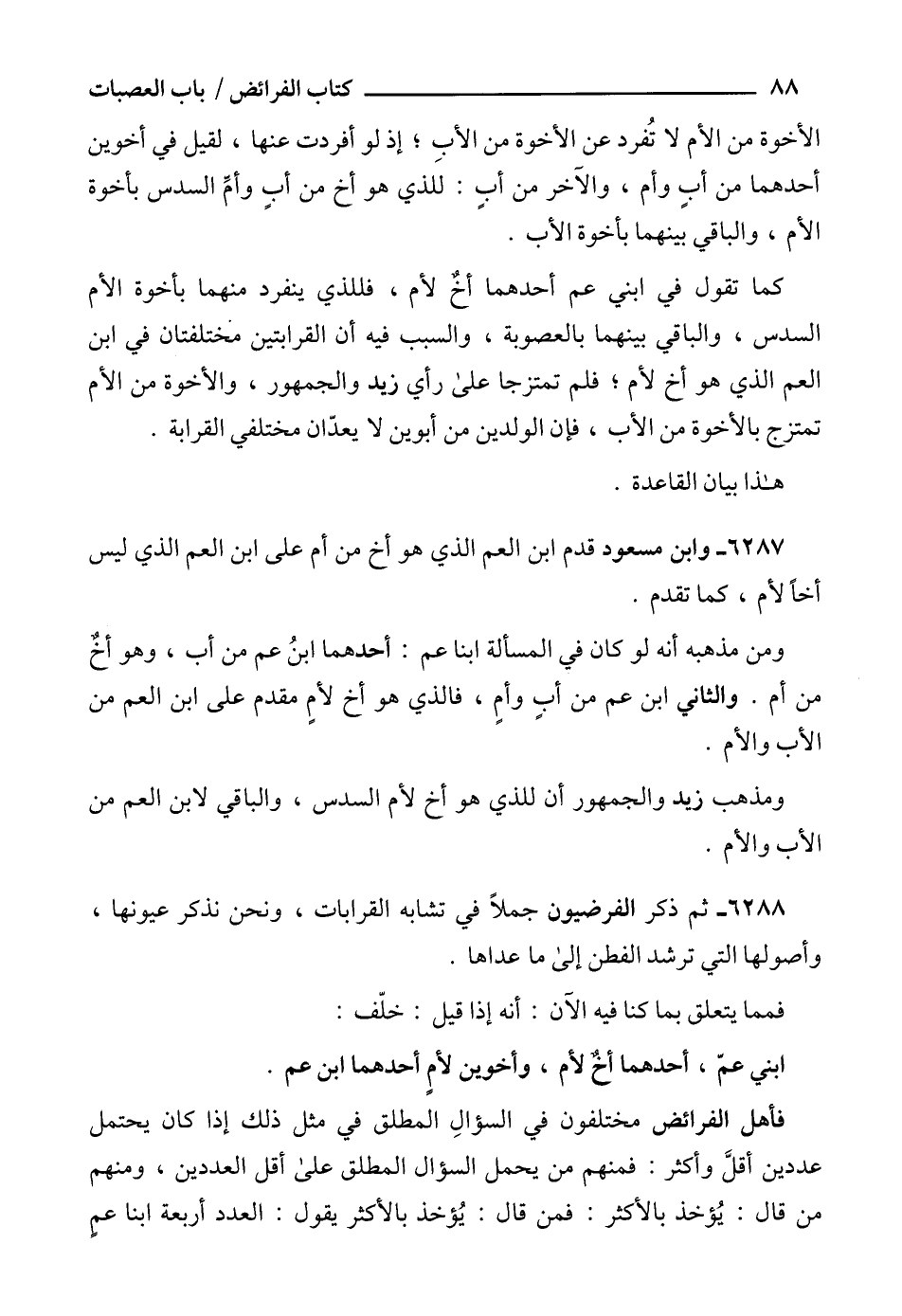 6287 - وابن مسعود قدم ابن العم الذي هو أخ من أم على ابن العم الذي ليس أخاً لأم، كما تقدم.