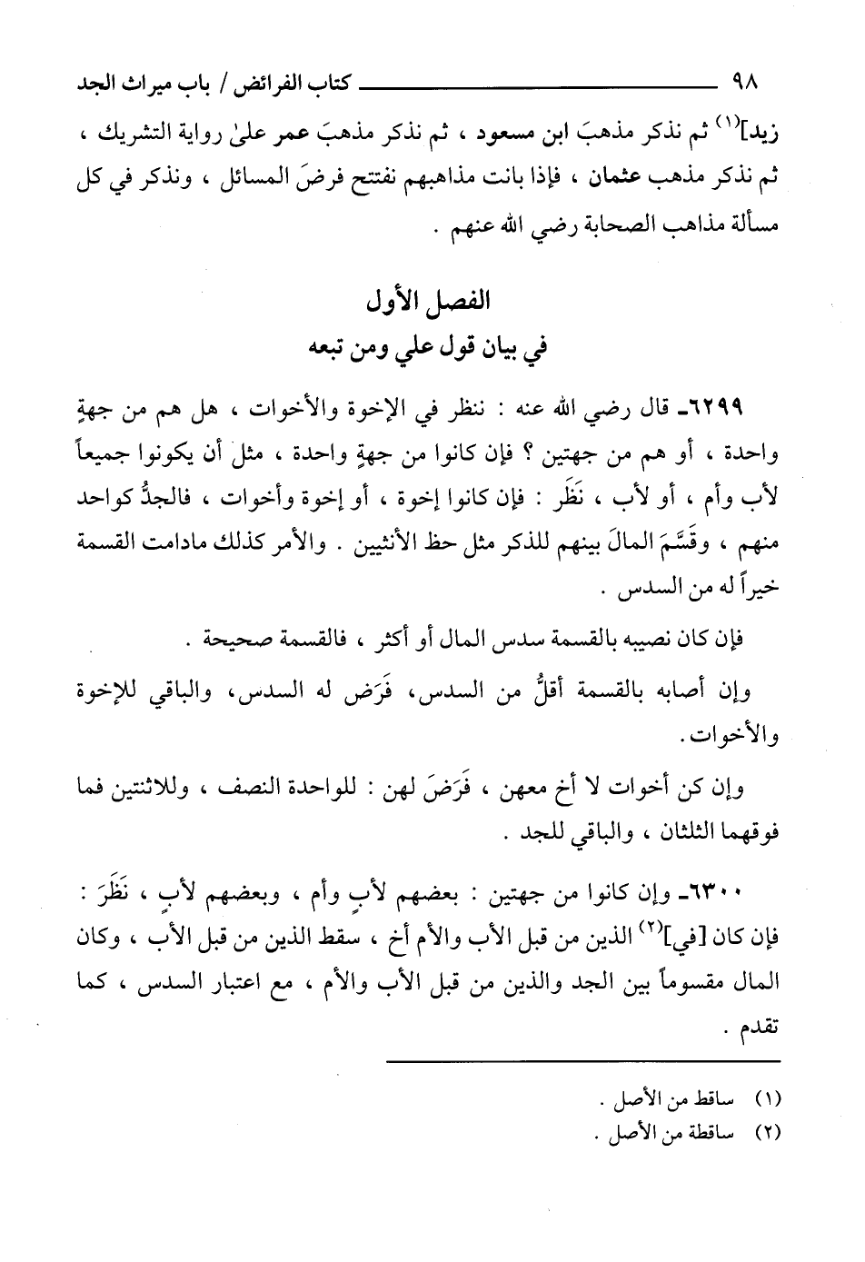 زيد] (1) ثم نذكر مذهبَ ابن مسعود، ثم نذكر مذهبَ عمر على رواية التشريك، ثم نذكر مذهب عثمان، فإذا بانت مذاهبهم نفتتح فرضَ المسائل، ونذكر في كل مسألة مذاهب الصحابة رضي الله عنهم.