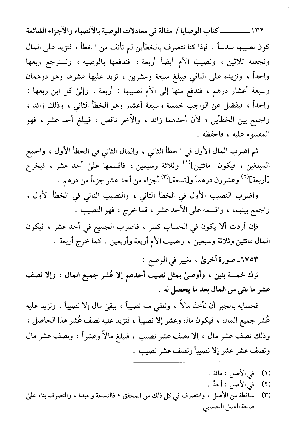 (3) ساقطة من الأصل، والتصرف في كل ذلك من المحقق؛ فالنسخة وحيدة، والتصرف بناء على صحة العمل الحسابي.