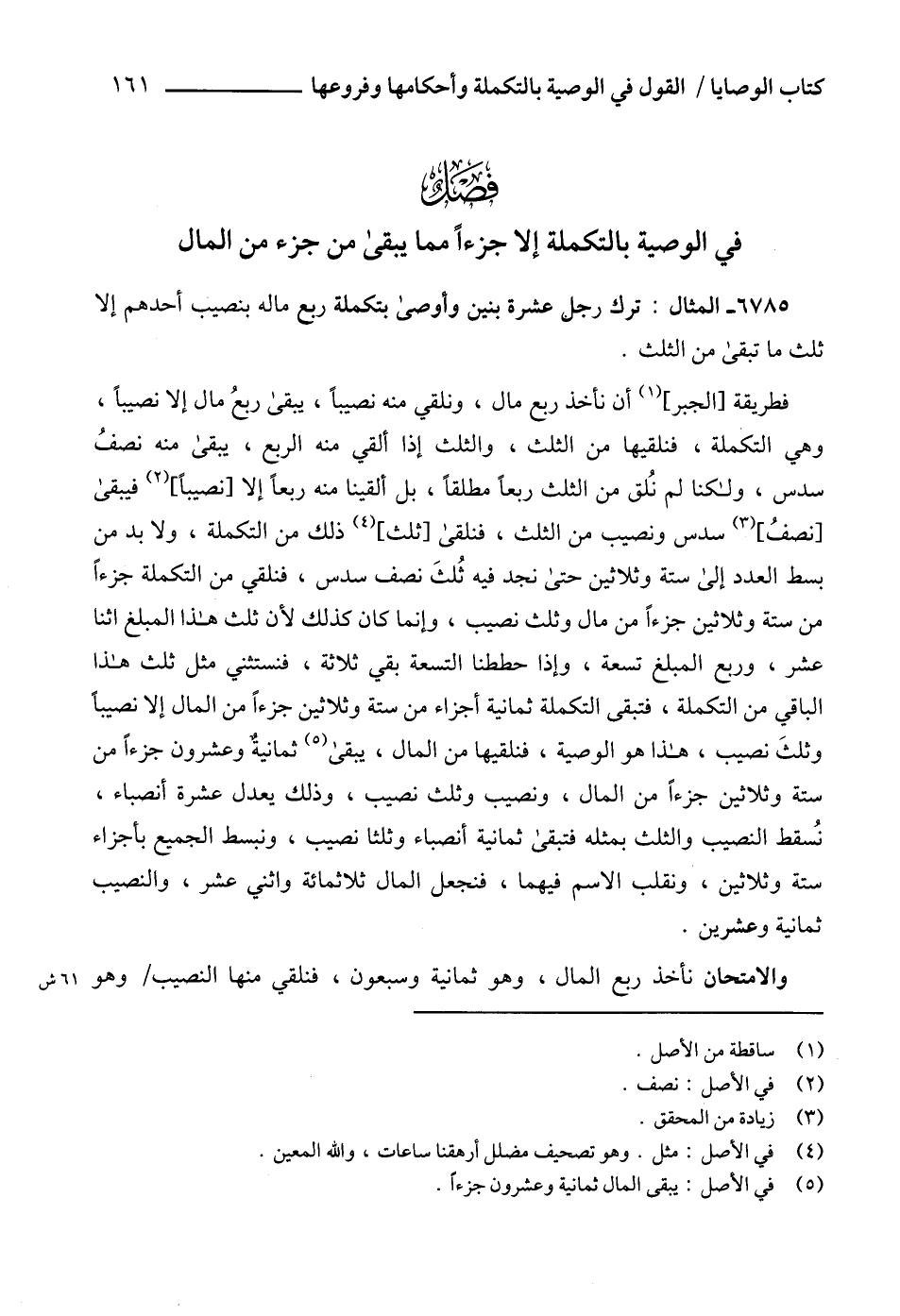 (5) في الأصل: يبقى المال ثمانية وعشرون جزءاً.
