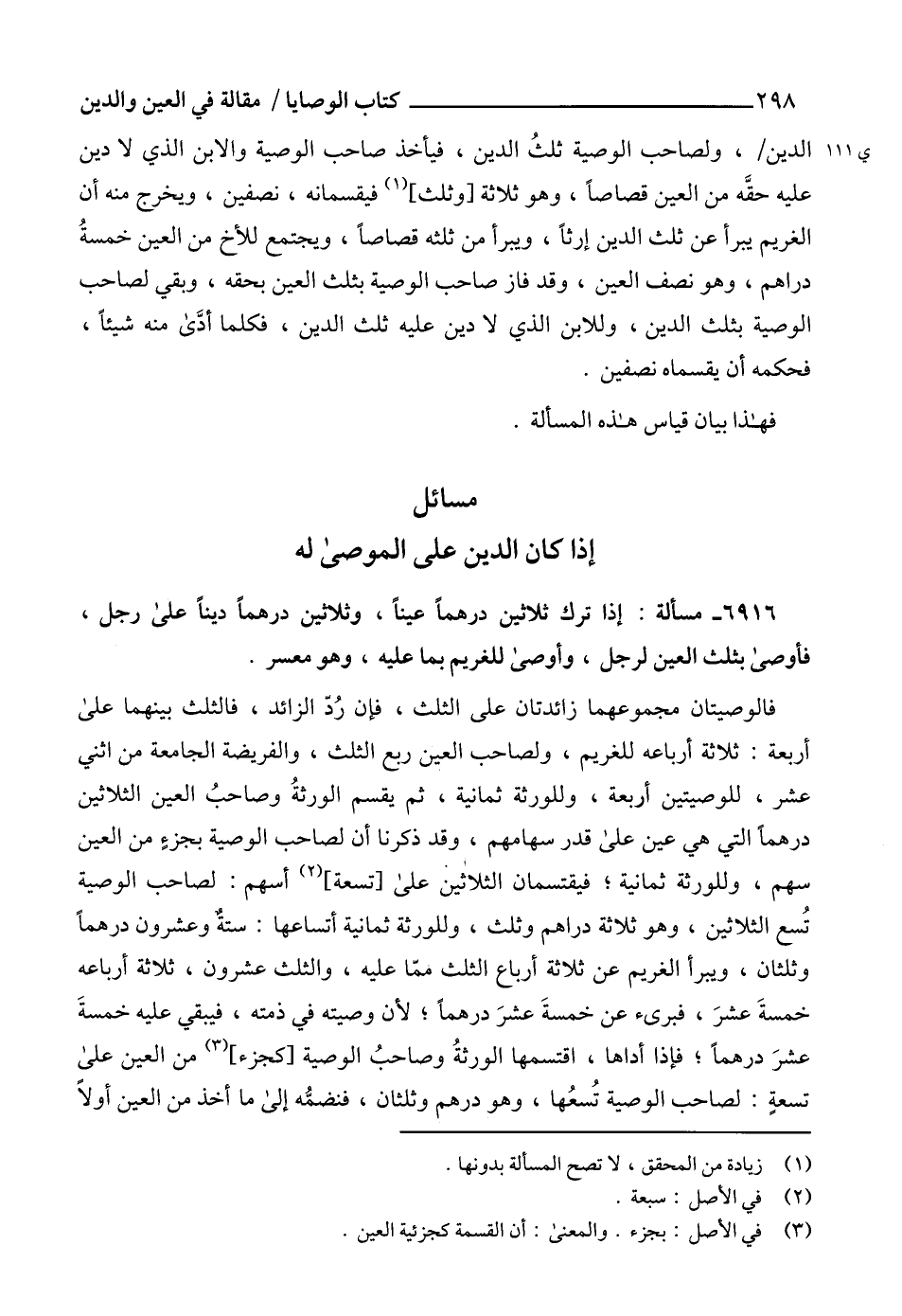 مسائل إذا كان الدين على الموصى له