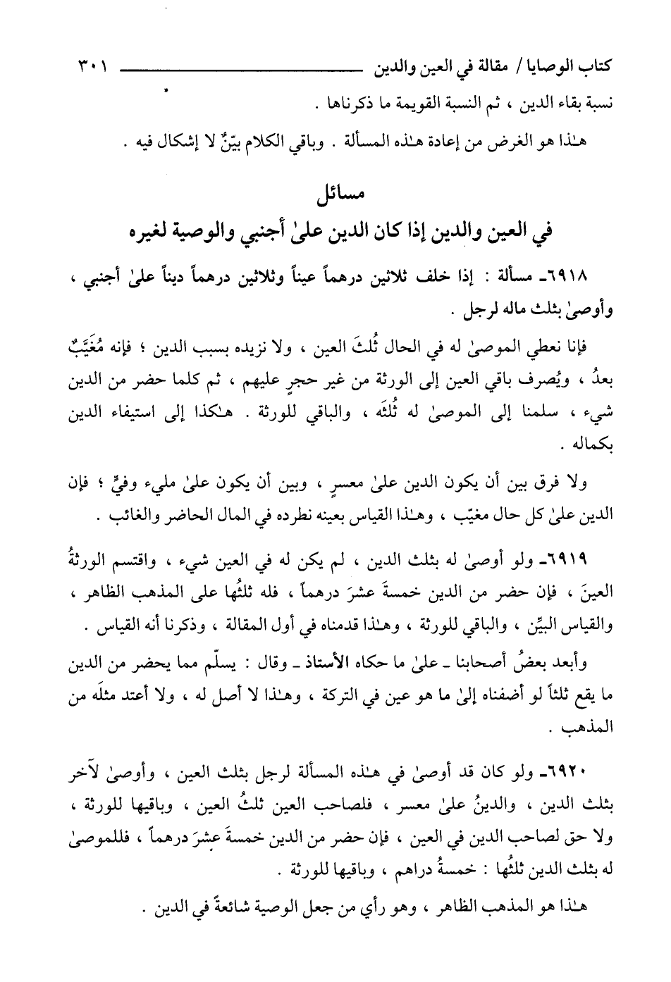 مسائل في العين والدين إذا كان الدين على أجنبي والوصية لغيره
