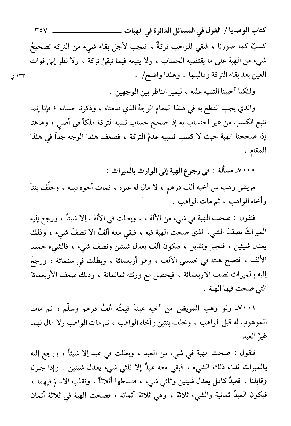 7000 - مسألة: في رجوع الهبة إلى الوارث بالميراث: