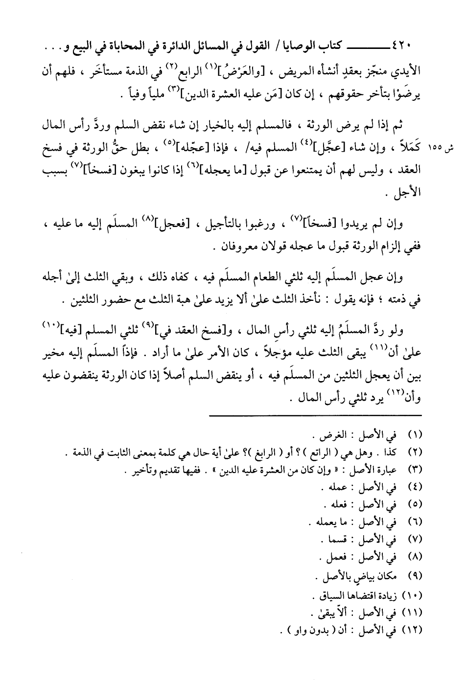 ولو ردَّ المسلَمُ إليه ثلثي رأسِ المال، و [فسخ العقد في] (9) ثلثي المسلم [فيه] (10) على أن (11) يبقى الثلث عليه مؤجلاً، كان الأمر على ما أراد. فإذاً المسلَم إليه مخير بين أن يعجل الثلثين من المسلَم فيه، أو ينقض السلم أصلاً إذا كان الورثة ينقضون عليه وأن (12) يرد ثلثي رأس المال.